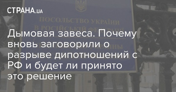 Еще одна версия - что запустив тему разрыва дипотношений с Россией, украинская власть (как в лице Петра Порошенко, так и в лице "Народного фронта") пытается перебить резонанс от коррупционных скандалов с сыном Авакова и оборонными заводами президента.