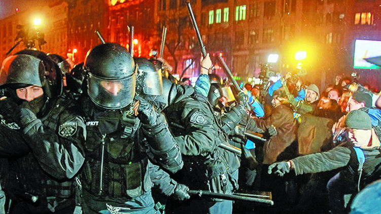 Порошенко ушел, а Беркут нанес по атакующим ответный удар, рассеяв толпу. Досталось и правым, и виноватым.