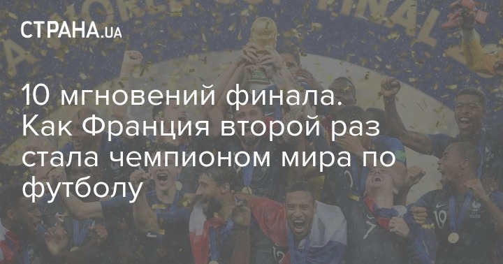 Его победителем оказалась французская команда, главный тренер которой Дидье Дешам вошел в историю — он один из трех людей на планете, побеждавший на ЧМ и игроком, и наставником. Но для этого пришлось прилично попотеть. Причем Хорватия больше владела мячом и чаще била по воротам (почти в два раза), но проиграла.