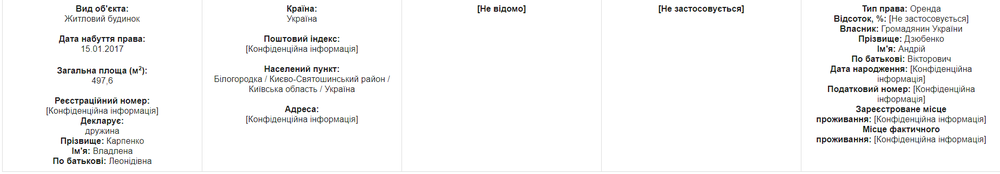 Но в декларации Мосийчука данная недвижимость появилась только в 2018 году. Народный избранник отразил, что с 15 января 2017 года его супруга Владлена Карпенко арендует дом у Андрея Дзюбенко.