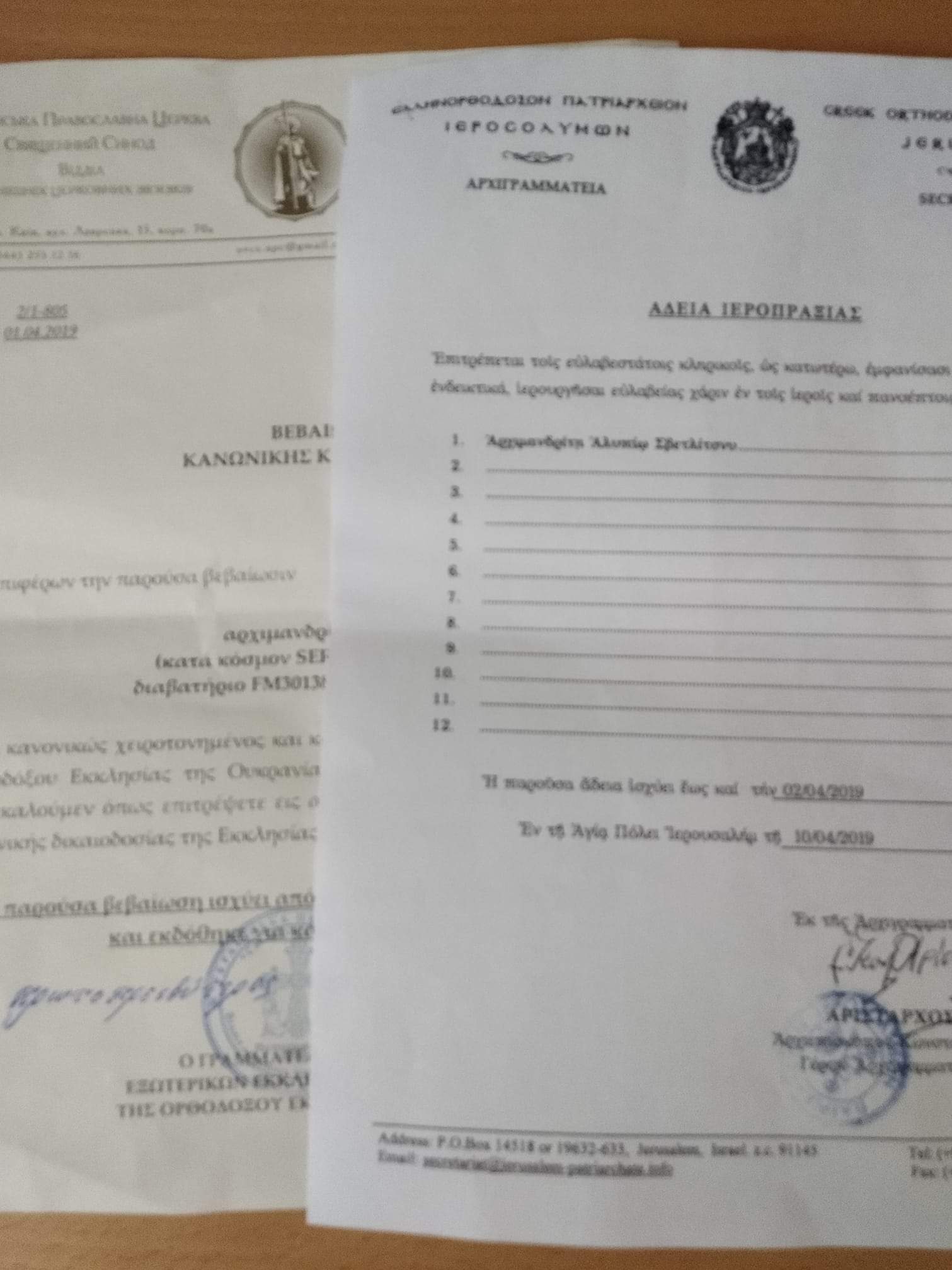 К тому же по непонятным причинам отец Михаил по приезду в Иерусалим снял с себя крест, с которым был запечатлён на фото при выезде с Киева.