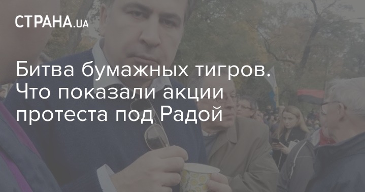 2. Впрочем, в не меньшей степени, чем власть, "бумажными тиграми" (используя известное определение Мао Цзедуна) можно назвать и лидеров самого протеста. Готовиться к ним больше месяца. Широко анонсировать. Задействовать известные медийные фигуры - Михаила Саакашвили, Найема, Лещенко, Семенченко и других. Получить немалую финансовую поддержку от недовольных властью бизнесменов. И в итоге собрать всего лишь пару-тройку тысяч людей на пике - это организационный и политический провал. Если бы не палаточный городок, то акция вообще прошла бы незамеченной. Почему так произошло - отдельный вопрос. Сыграли свою роль и непонятные требования (но о них подробнее ниже). И наличие большого числа "кротов" Банковой и Авакова среди организаторов акции, которые начали ее "сливать" ещё до начала. Важно было и то, что "лицом" протеста сразу стал Михаил Саакашвили. И прочие лидеры и партии - Тимошенко, Самопомощь, Нацкорпус, Свобода, не захотели таскать для него каштаны из огня. Поэтому их участие, ещё до официального выхода из акций протеста 19 октября, было чисто формальным (та же Юлия Тимошенко вообще осторожно относится к акциям протеста, полагая, видимо, что, обладая самым высоким рейтингом, может победить просто на выборах и без помощи улицы, которую она, к слову, не контролирует). А популярности, политического веса и организационных возможностей и способностей одного Михо оказалось явно недостаточно для того, чтобы организовать масштабный протест. Видимо, для него нужны все-таки другие лидеры. Либо Саакашвили должен прыгнуть "выше головы" и собрать народ.