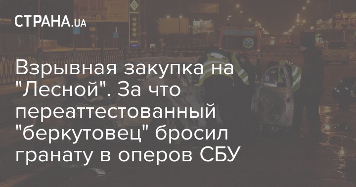 "Сотрудники СБУ... проводили контрольную закупку боеприпасов у старшины роты батальона полиции особого назначения ГУНП в Киевской области. Во время задержания тот оказал сопротивление и бросил гранату в автомобиль Toyota Camry, в котором находились эсбэушники", – сообщил причины бойни собеседник журналистов.