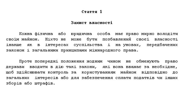 Протокол №1 вместе с Конвенцией о защите прав человека и основных свобод еще в 1997 году ратифицировала Верховная Рада. Поэтому он является частью национального законодательства Украины.