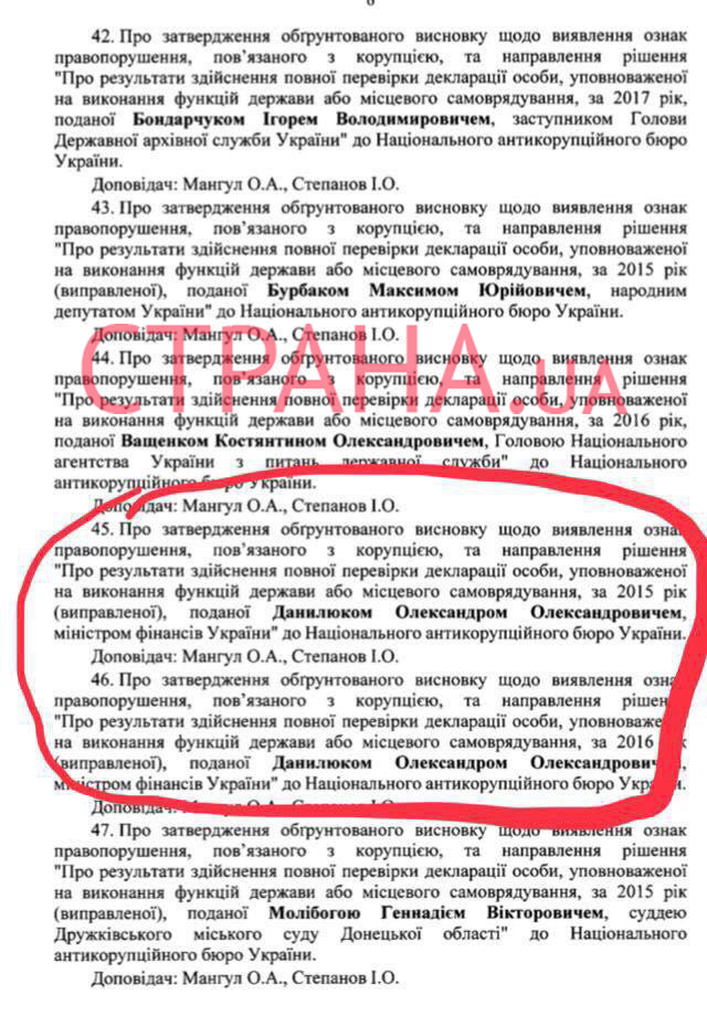 И как раз сегодня состоялось заседание НАПК, на котором было принято решение передать информацию о коррупционном правонарушении Данилюка в НАБУ. Что может стать основой для возбуждения против него уголовного дела.