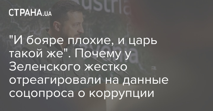Результаты социсследования бьют по главной стратегии Зеленского относительно темы коррупции, которую можно сформулировать классической фразой "царь хороший, бояре плохие". Опрос показал: украинцы считают, что за коррупцию как раз "царь" и несет прямую ответственность.