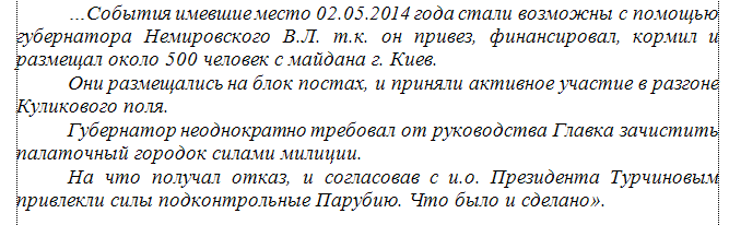 "Как сообщила в своем отчете следственная комиссия Рады, заместитель одесского губернатора Владимира Немировского, экс-начальник управления по взаимодействию с правоохранительными органами Игорь Болянский лично приказывал "евромайдановцам" идти разгонять людей на Куликовом поле".