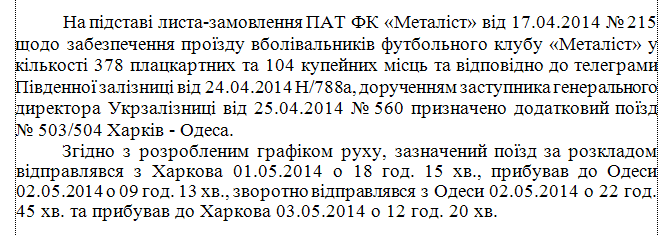 В уже упомянутом отчете следственной комиссии Верховной Рады говорится, что, согласно купленным билетам, из Харькова в Одессу тогда приехали почти полтысячи "ультрас", для которых заказали два спецпоезда. Обратно из Одессы в Харьков поезд тогда отправился в 22:45, то есть после окончания трагических событий в Доме профсоюзов: