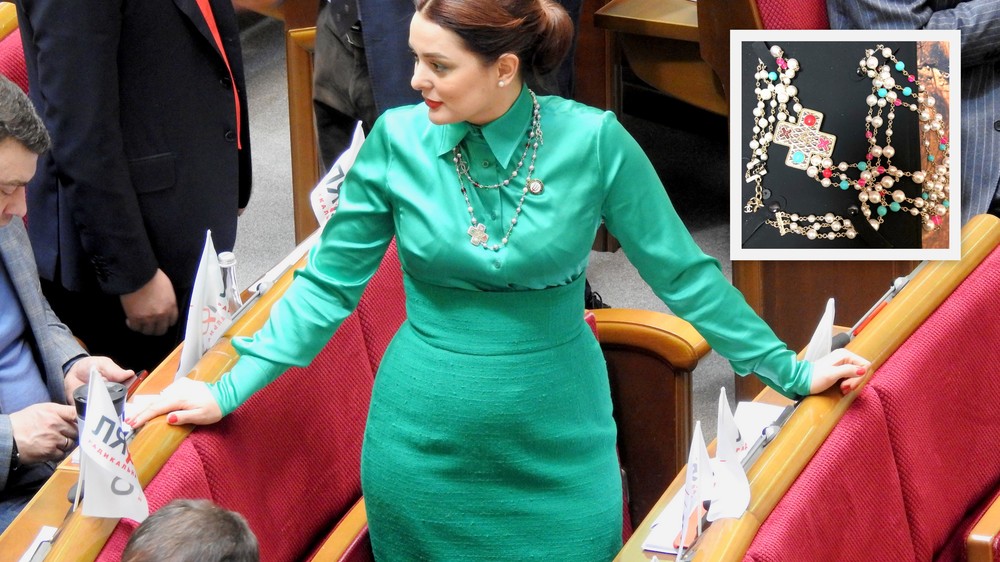 Новенькая депутат из "Радикальной партии" Валерия Заружко, видимо, уже адаптировалась в парламенте и поэтому решила не стесняться и прийти в ожерелье известного бренда.