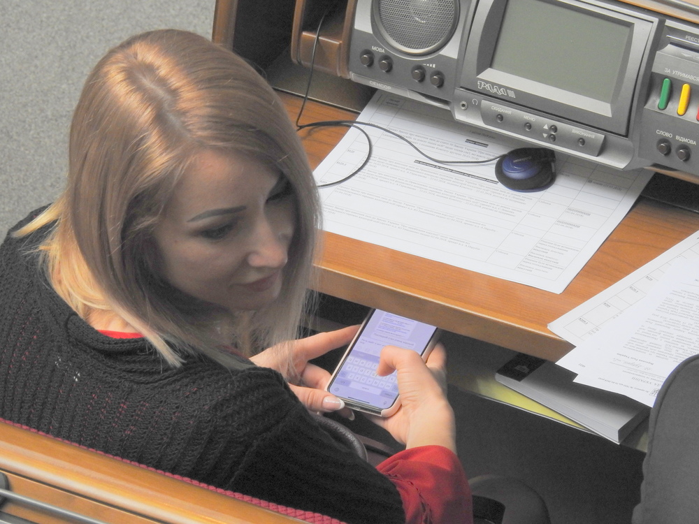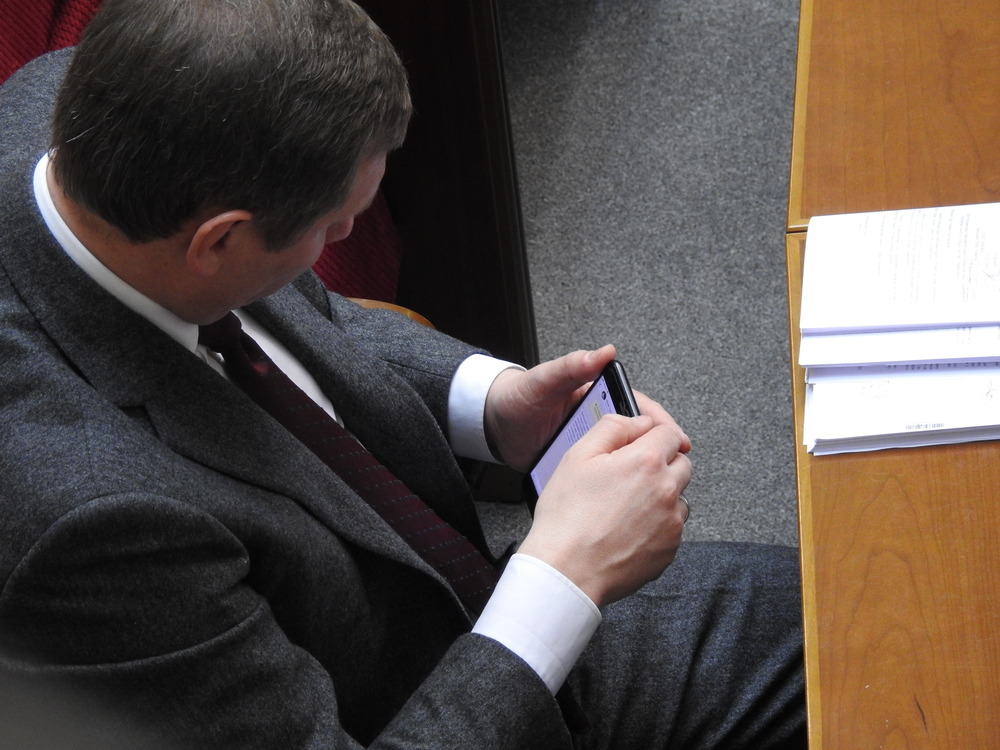 Нардеп Сергей Пашинский из "Народного фронта" очень не хочет, чтобы соседи по рабочему месту и журналисты из ложи прессы видели его переписки на телефоне. Поэтому, переписываясь с кем-то, он закрывает свой телефон рукой.