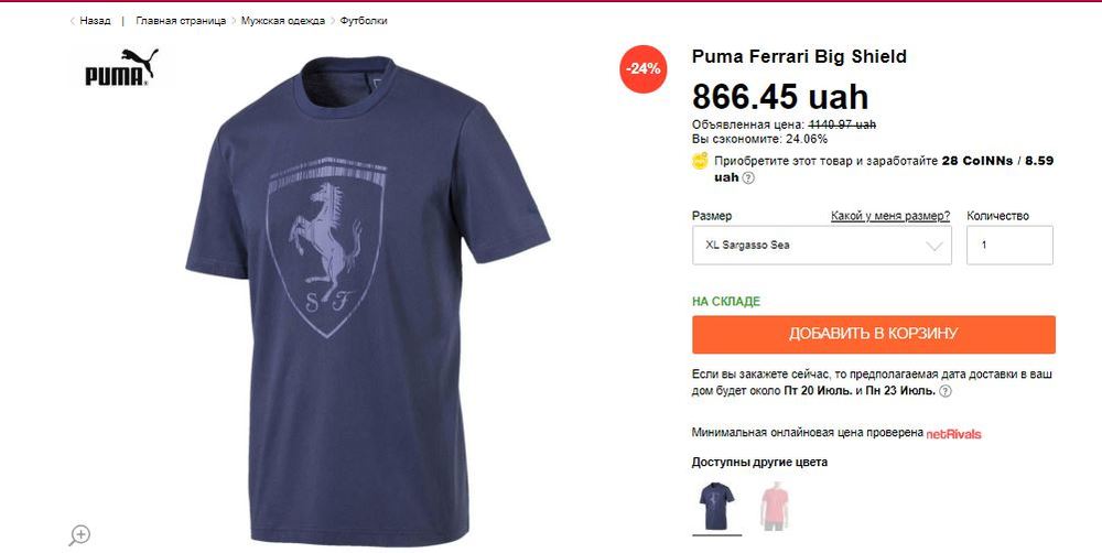 Также мы видели у Линько несколько брендовых вещей. В частности футболки поло Paul & Shark, пуловер Hugo Boss и футболку Puma из коллекции Ferarri. Стоит без скидки такая 1140 гривен, но сейчас на распродаже (-24%) можно купить за 866 гривен.