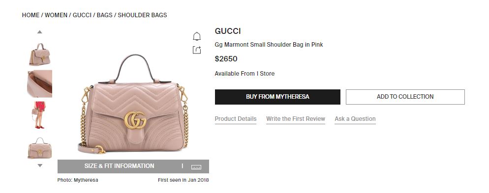 Стоит эта сумочка $2650 или 66 850 гривен по курсу НБУ на 29.08.2019 года. Аксессуар с золотистой фурнитурой GG, съемной цепочкой и кожаным ремешком через плечо. Бесплатно в Украину эта сумка не приедет. Доставка обойдется от $35. Кстати, аксессуары Gucci по популярности на третьем месте после Armani и Prada.