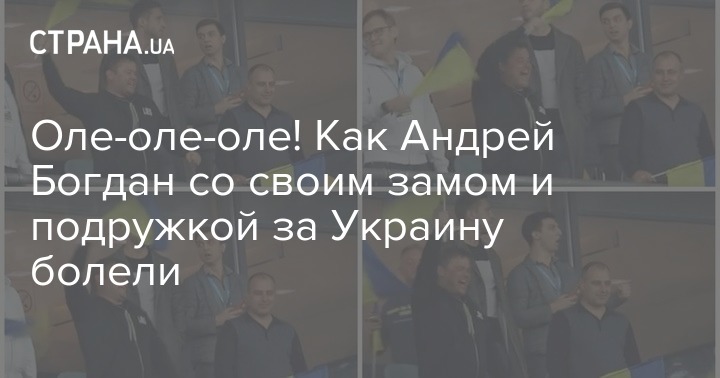 42-летний Андрей Богдан, глава ОП вместе со своим заместителем 38-летним Андреем Смирновым пришли в сектор с флагами Украины. Оба Андрея болели от души: кричали речевки и активно пританцовывали в такт.