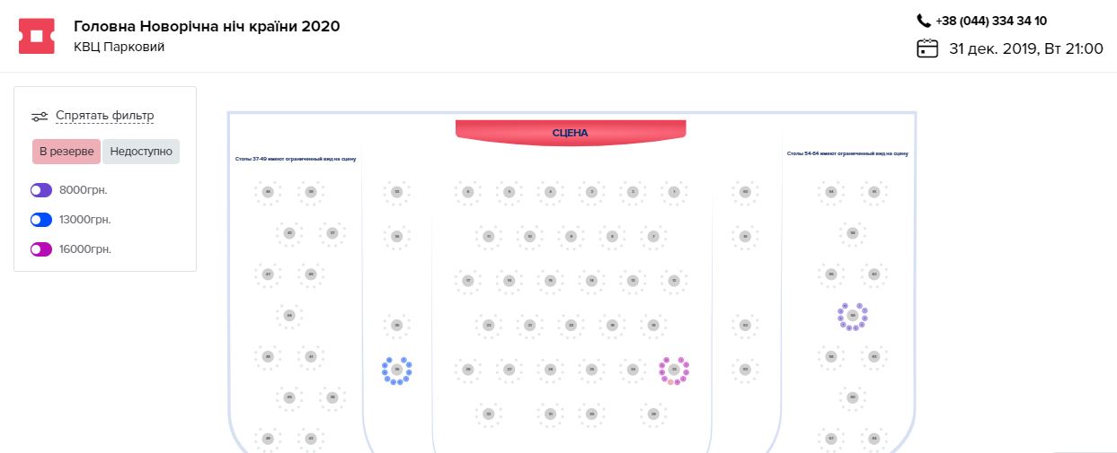 Место за столиком для взрослого стоит от 8000 до 16 000 гривен. И свободных столиков осталось только три на данный момент. Стоимость билета для детей от 2-12 лет: 3000 гривен, включая детское меню (без посадочного места в основном зале).