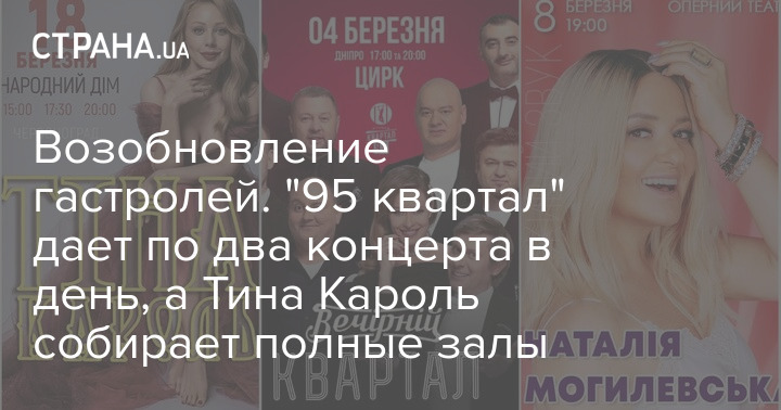 Но и при таких ограничениях начало весны ознаменовалось "оттепелью" в концертной жизни украинских топ-артистов. Так, в столице прошло несколько сборных выступлений в ДК "Украина" и на других площадках Киева. Юмористы из "95 квартала" отправились в долгожданный тур по стране. А вместе с ними о плотном гастрольном графике объявили певицы Тина Кароль и Наталья Могилевская.