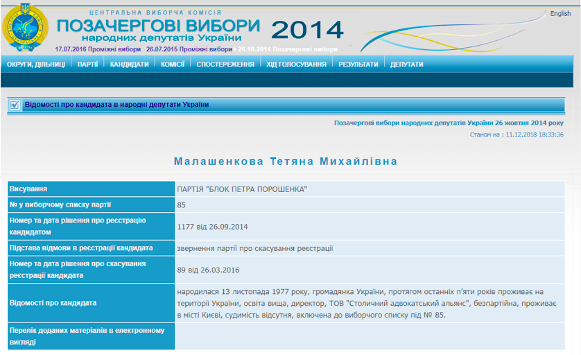 Как сказано в официальной биографии на сайте ВСП, Татьяна Малашенкова с 2001 по 2005 годы работала юрисконсультом закрытого акционерного общества "Укрпроминвест". До создания корпорации "Рошен" это была ключевая структура бизнес-империи Петра Порошенко: