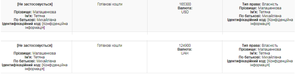 Мария Ивановна Малашенкова вместе Татьяной Малашенковой и другими членами семьи являются совладельцами еще одной киевской квартиры, которую последняя указывала в своих декларациях: