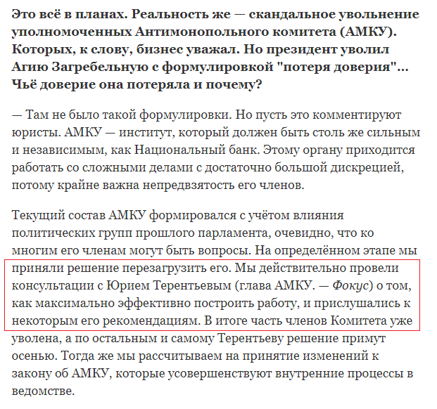 Кроме тендеров, АМКУ может штрафовать (или не штрафовать) монополии. Здесь у Терентьева тоже огромные возможности для маневров в нужную сторону.