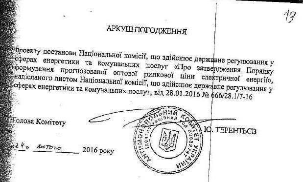 Подписал постановление НКРЭКУ глава комиссии Дмитрий Вовк. До своего назначения он работал менеджером кондитерской компании "Рошен" в Москве. В момент назначения председателем НКРЭКУ в конце 2014 года Дмитрию Вовку было всего 24 года.