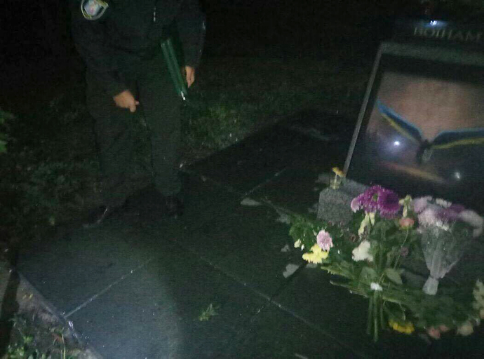 А поздно вечером в сторону памятника с дороги бросили самодельное взрывное устройство. Постамент не был поврежден, но неподалеку от него осталась воронка диаметром около 50 см и глубиной 10 см.