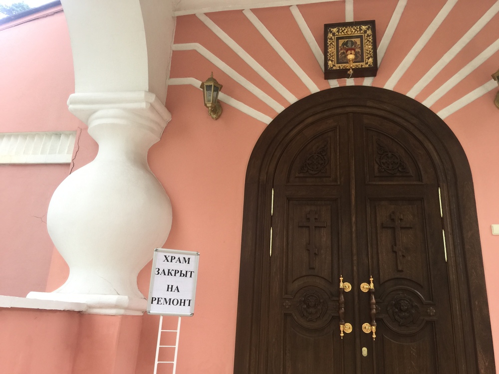 Единственный работающий храм – совсем новый – Спаса Преображения Господня. И несколько еще закрыты – они на реставрации. Некоторые храмы неизвестно, закрыты или нет, но доступа к ним нет – они за забором.