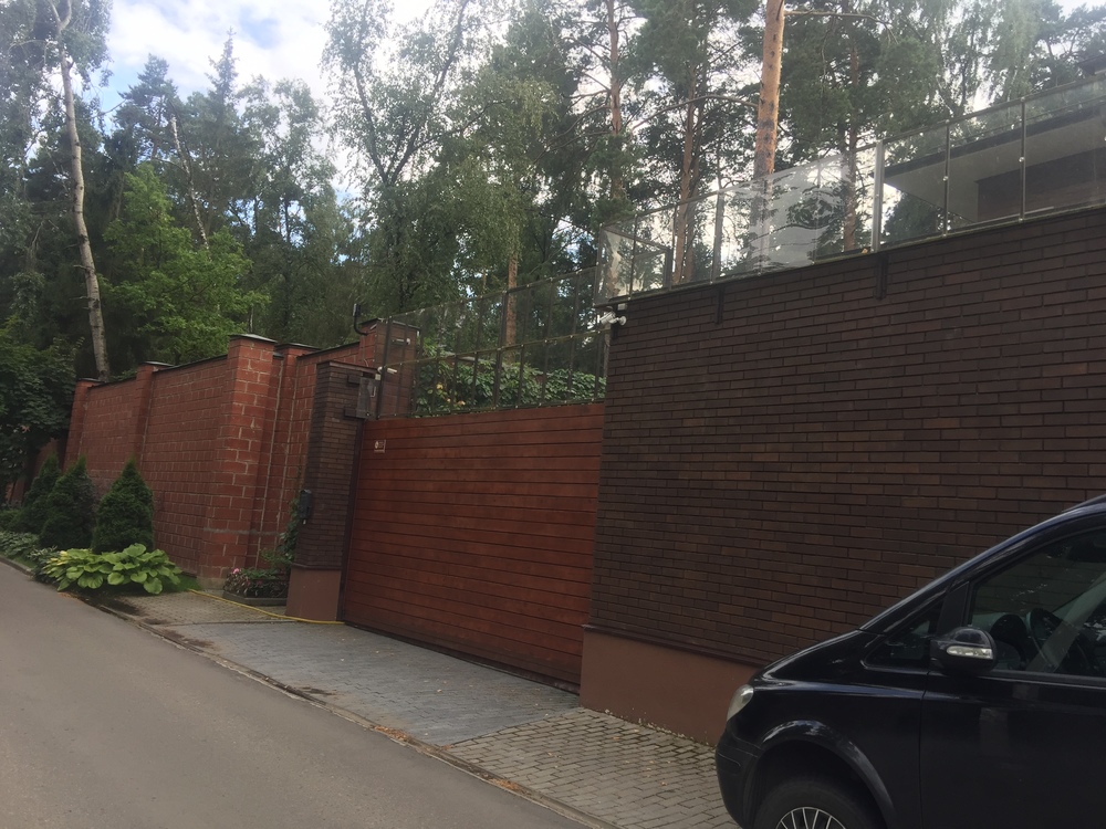 За забором, который в высоту не менее четырех метров, не просматривается почти ничего. Видны лишь окна мансардного этажа - то ли дома охраны, то ли гаража – они в целях безопасности защищены прозрачной пуленепробиваемой стеной. Маленькая табличка уведомляет нас о том, что дом сторожит госпредприятие "Охрана" МВД России. Интернет не ловит.