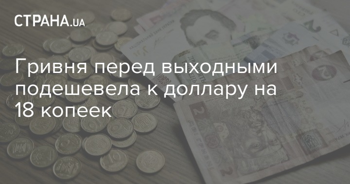 На межбанковских валютных торгах в последний рабочий день недели курс гривни снизился на 18 копеек. А НБУ на понедельник опустил курс национальной валюты по отношению к доллару на 19 копеек.