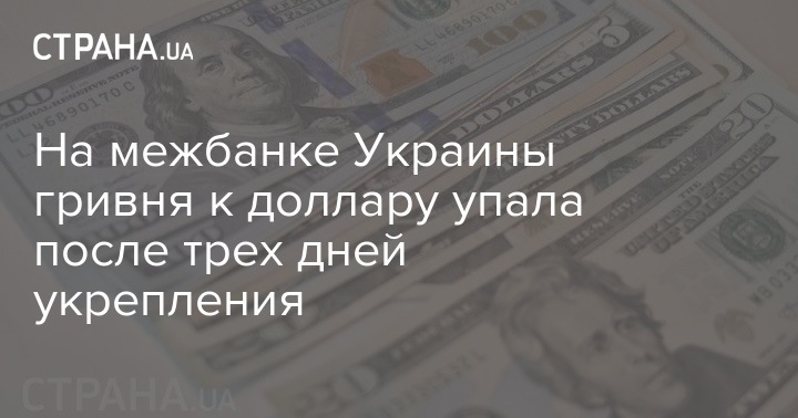 На межбанке Украины гривня к доллару упала после трех дней укрепления