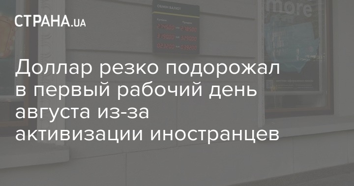 Безналичный курс доллара подскочил в первый день нового месяца: 3 августа он прибавил сразу 15 копеек, и вышел на 27,85-27,88 грн/$. Наличный рынок тоже подрос, хотя и не так сильно - на 5-9 копеек: средняя цена на продаже дошла до 27,85-27,95 грн/$, на покупке - до 27,50-25,65 грн/$.