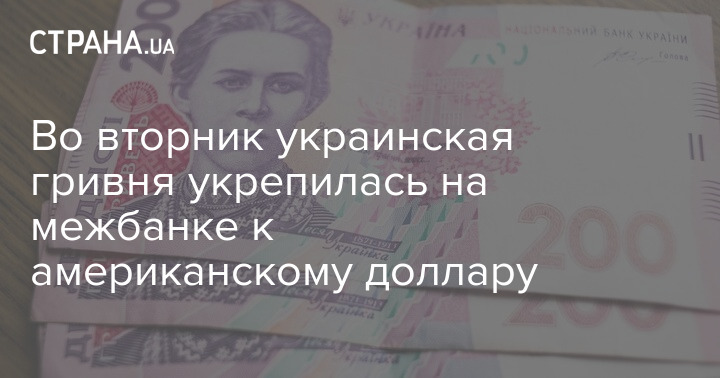 Во вторник, 25 августа, гривня на межбанке укрепилась до 27,390 грн/$1 с 27,445 грн/$1 в предыдущий рабочий день. Котировки нацвалюты на закрытии торгов составили 27,38-27,40 грн/$1. Об этом  сообщает "Интерфакс-Украина" со ссылкой на дилеров коммерческих банков.