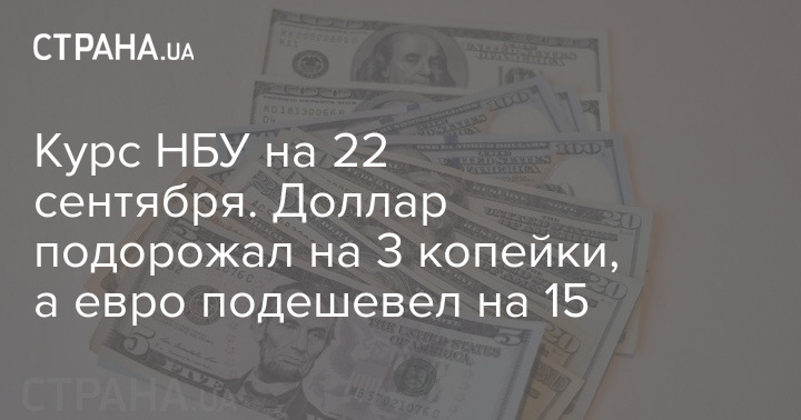 Во вторник, 22 сентября, Национальный банк Украины установил официальный курс на уровне 28,20 грн/$1. Это на 3 копейки больше, чем в предыдущий рабочий день.