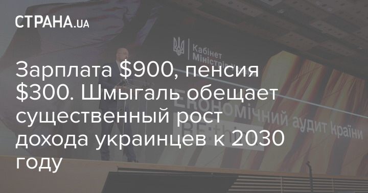 Премьер-министр Украины Денис Шмыгаль заявил, что средняя зарплата в Украине к 2030 году составит почти $900 (25 000 гривен по курсу - Ред.), а пенсия - около $300 (8 400 гривен).