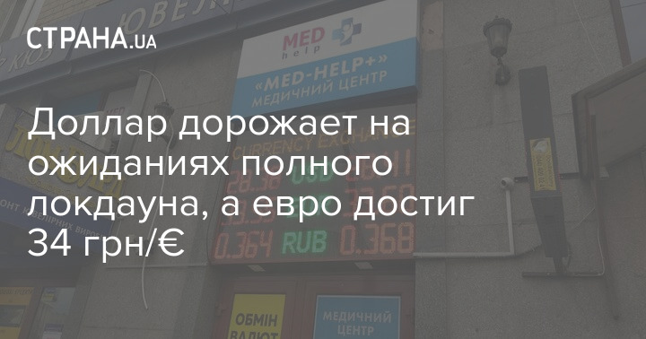 Доллар дорожает на ожиданиях полного локдауна, а евро достиг 34 грн/€
