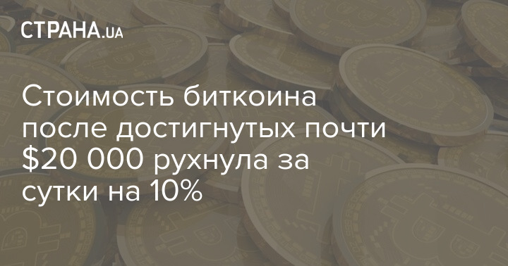 Стоимость биткоина после достигнутых почти $20 000 рухнула за сутки на 10%