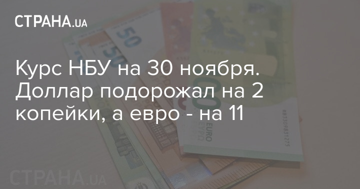 Курс НБУ на 30 ноября. Доллар подорожал на 2 копейки, а евро - на 11