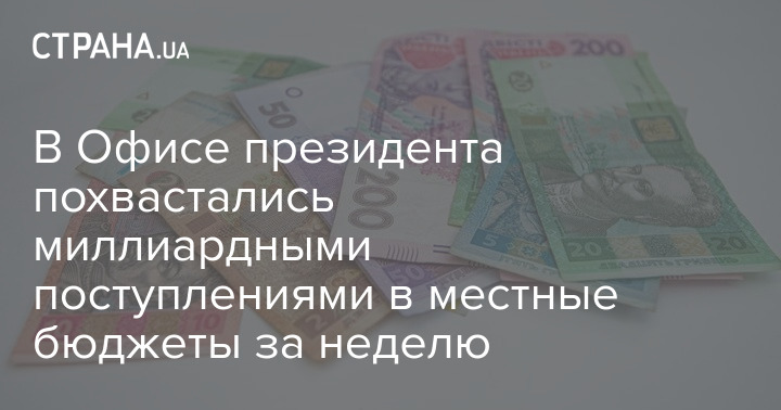 Так, по данным Офиса президента, за минувшую неделю  6,1 миллиардов гривен поступили в местные бюджеты.