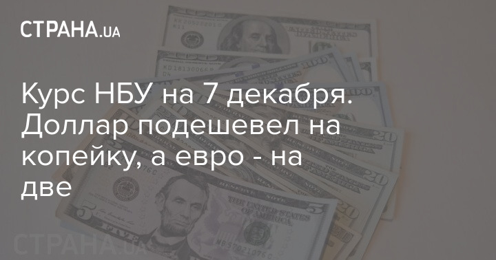 Курс НБУ на 7 декабря. Доллар подешевел на копейку, а евро - на две