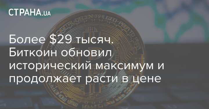 Стоимость биткоина этой ночью превысила отметку в $29 тысяч, тем самым обновив исторический максимум.