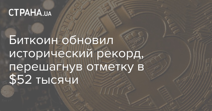 Биткоин обновил исторический рекорд, перешагнув отметку в $52 тысячи