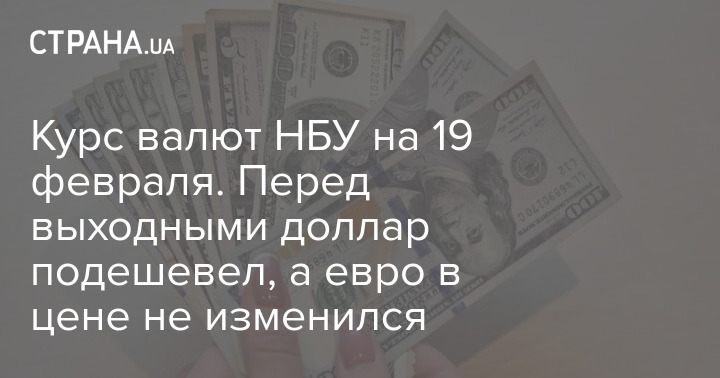 Национальный банк Украины установил в пятницу, 19 февраля, официальный курс гривны по отношению к иностранным валютам. По сравнению с предыдущим рабочим днем доллар подешевел, а евро в цене не изменился.