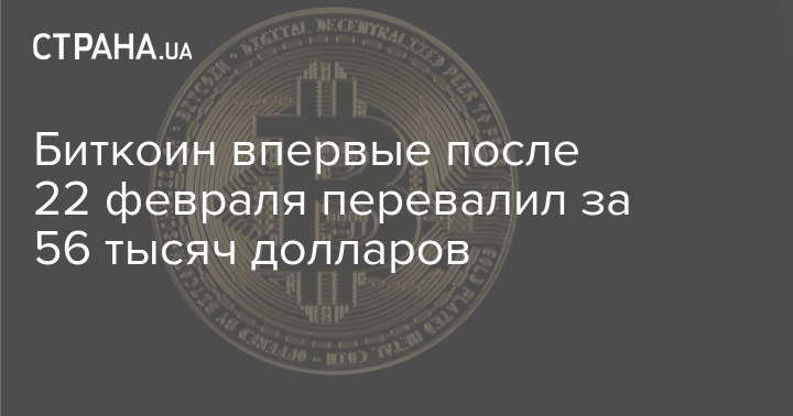 В среду, 10 марта, стоимость биткойна превысила 56 тысяч долларов впервые с 22 февраля, когда цена этой криптовалюты резко обвалилась ниже 50 тысяч долларов. Об этом свидетельствуют данные сегодняшних торгов.