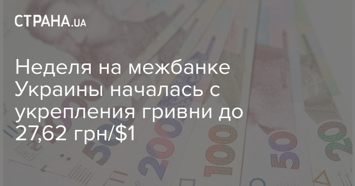 Неделя на межбанке Украины началась с укрепления гривни до 27,62 грн/$1