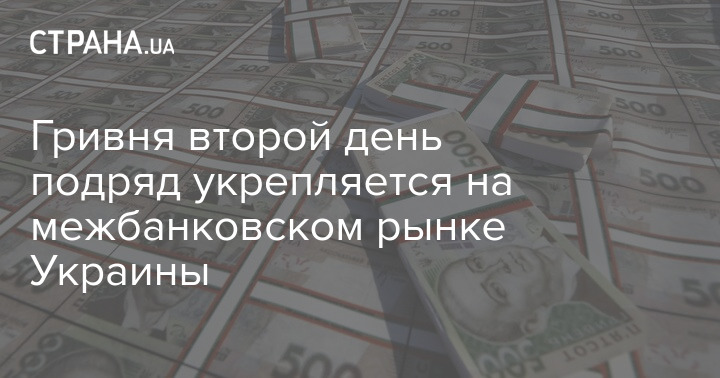 Гривня второй день подряд укрепляется на межбанковском рынке Украины
