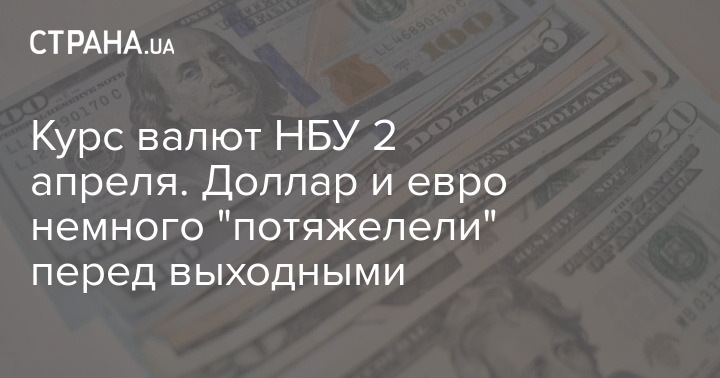 В пятницу, 2 апреля, Национальный банк Украины установил официальный курс доллара на уровне 27,83 гривен/$, а курс евро - 32,70 грн за единицу валюты.