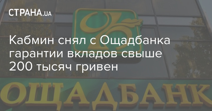 "Снимаются госгарантии на вклады свыше 200 тысяч гривен. За ними в случае чего вкладчикам "Ощадбанка" придется побегать. Но тут сразу возникает вопрос. Согласно закону о банках собственник значительного участия обязан не допускать банкротства банка.