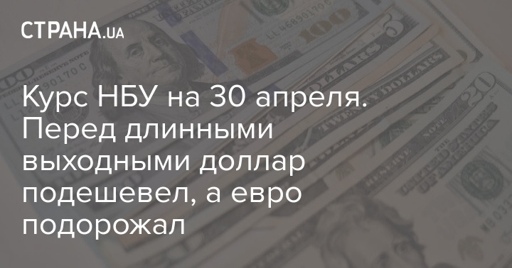 В пятницу, 30 апреля, Национальный банк Украины установил официальный курс гривны по отношению к иностранным валютам. По сравнению с предыдущим рабочим днем доллар упал в цене, а евро - вырос.