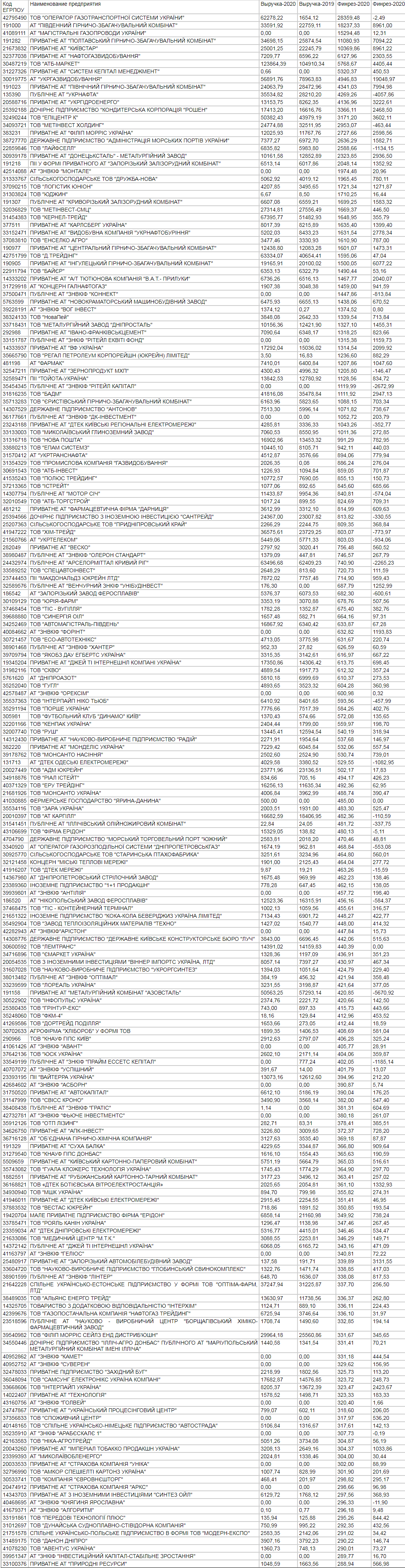 Список 200 самых прибыльных компаний в Украине по итогам 2020 года возглавил "Оператор ГТС Украины". Также на верхних позициях в рейтинге разместились сеть супермаркетов "АТБ", "Нафтогаздобыча". А в первую двадцатку попала корпорация экс-президента Петра Порошенко "Рошен".