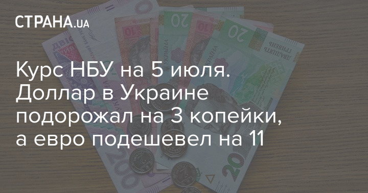 Курс НБУ на 5 июля. Доллар в Украине подорожал на 3 копейки, а евро подешевел на 11