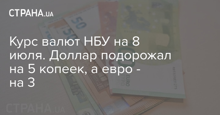 Национальный банк Украины (НБУ) в четверг, 8 июля, установил официальный курс гривны по отношению к иностранным валютам. По сравнению с предыдущим рабочим днем доллар и евро выросли в цене.