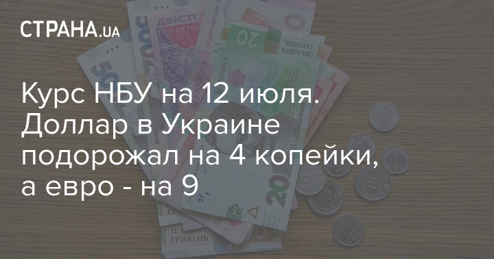Национальный банк Украины в понедельник, 12 июля, установил официальный курс гривны по отношению к иностранным валютам. По сравнению с предыдущим рабочим днем доллар и евро выросли в цене.